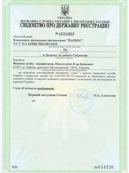 СВИДЕТЕЛЬСТВО О ГОСУДАРСТВЕННОЙ РЕГИСТРАЦИИ АНТИПАРАЗИТАРНОГО ПРИБОРА БРТ ПАРКЕС |